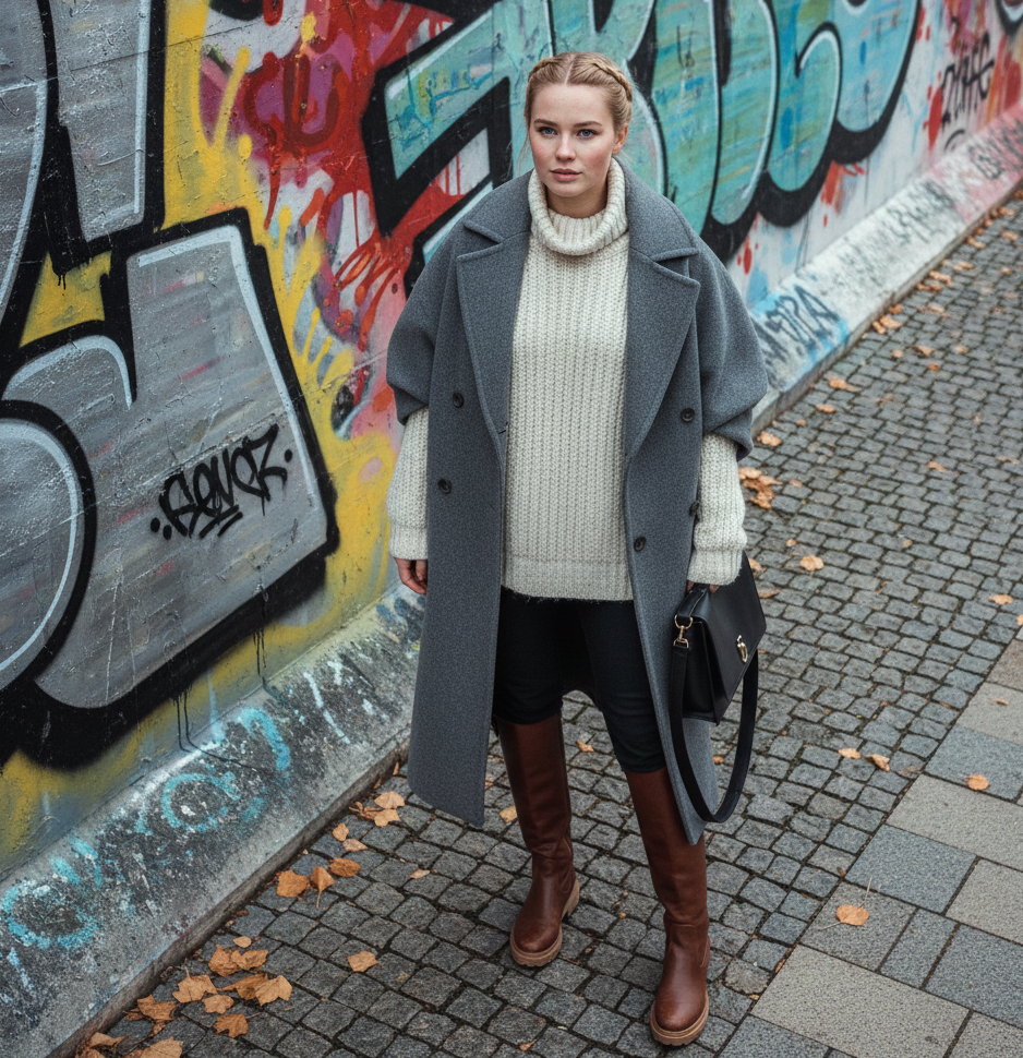 Zeitlose minimalistische Ästhetik – Das Design besticht durch klare Linien und präzise Schnitte, die eine stets elegante Erscheinung schaffen, passend für jede Jahreszeit. Die schlichte und dennoch raffinierte Gestaltung unterstreicht eine moderne Schlichtheit, die zeitlose Eleganz zelebriert und kurzlebige Modetrends überdauert. Die neutralen Farbtöne Braun und Marineblau verstärken den Eindruck von Zurückhaltung und Stil, wodurch sich das Ensemble mühelos in jede Garderobe integrieren lässt.